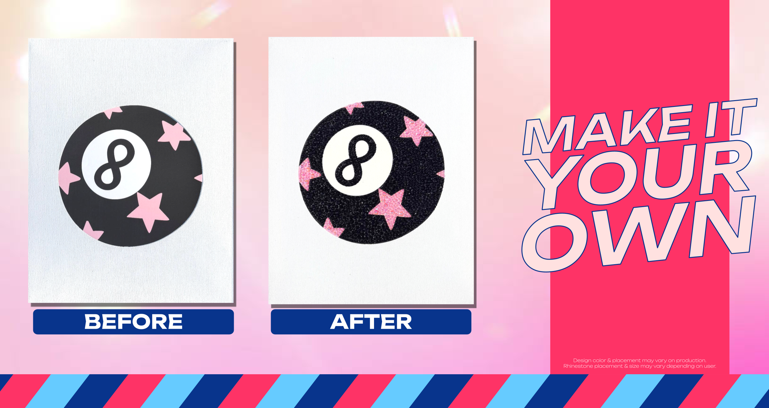 Black with Pink Stars 8 Ball Bedazzling Kit – 11” x 14”