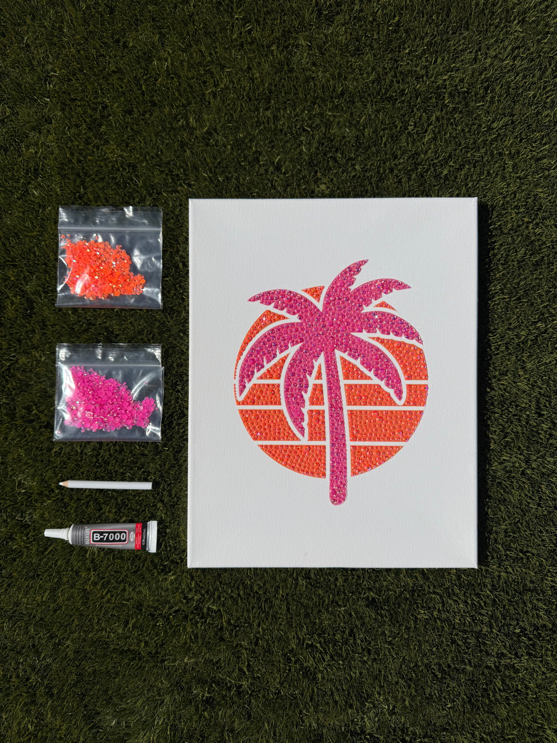Bring the beach vibes home! This DIY kit features a Palm Tree & Sunset design pre-pressed on a premium stretched canvas—ready for you to glam up with pink and orange rhinestones for a dreamy, tropical finish.